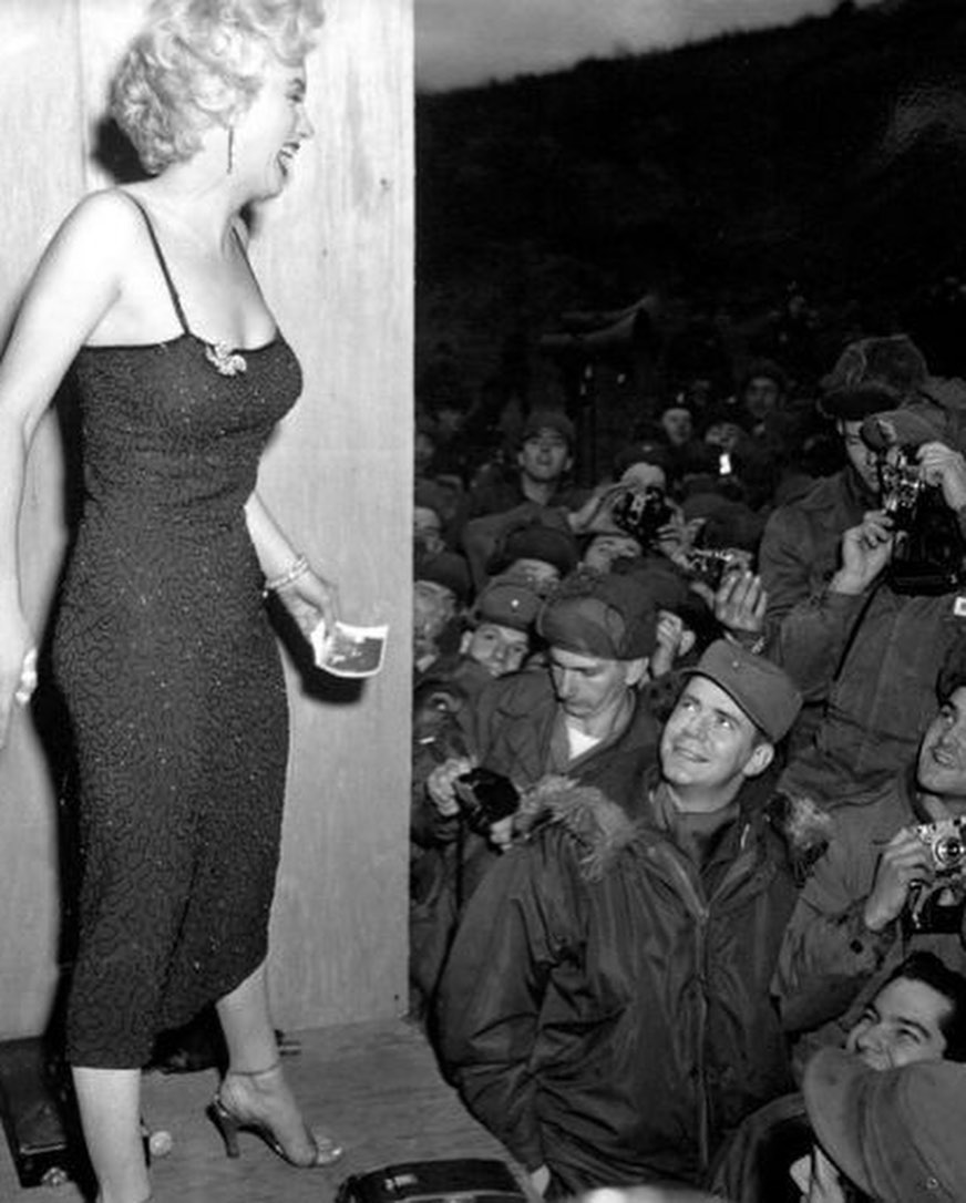 강원도 철원 계곡에 있는 불도저 보울에서 미 육군 제2보병 사단을 위해 공연했을 때에 군인들은 그녀를 보기위해 7시간 전부터 줄을 섰고 먼로는 두꺼운 파카를 입고 등장했다.