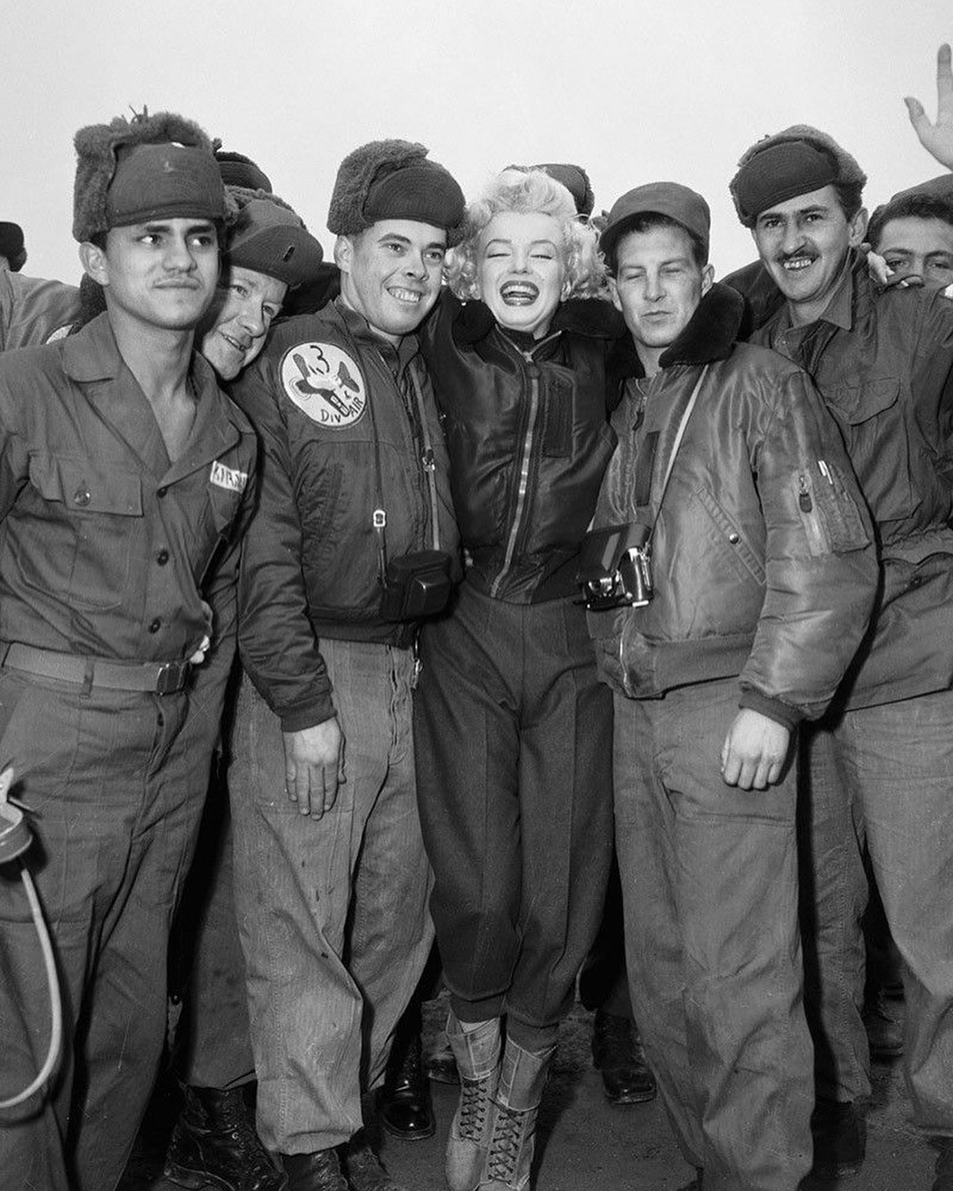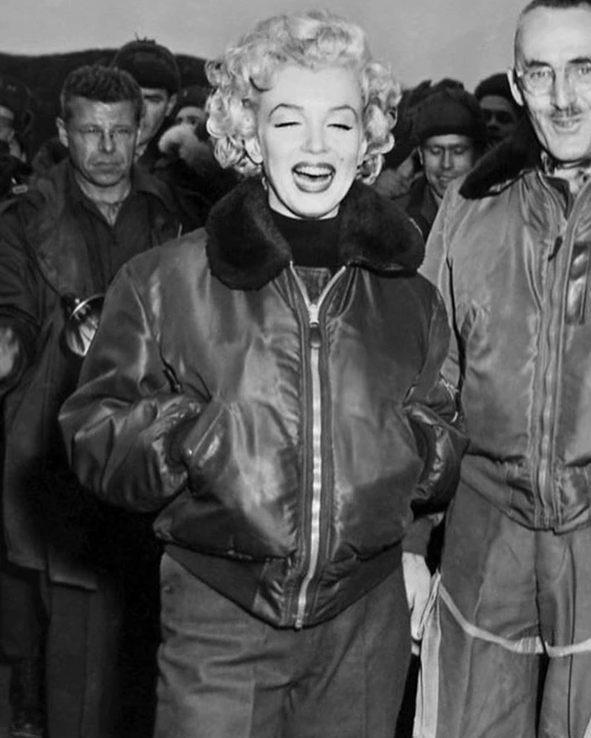 2월 16일 헬리콥터를 타고 서울에 도착한 마릴린 먼로는 한국전쟁중 사용되었던 B-15C 재킷을 입고 있었다.