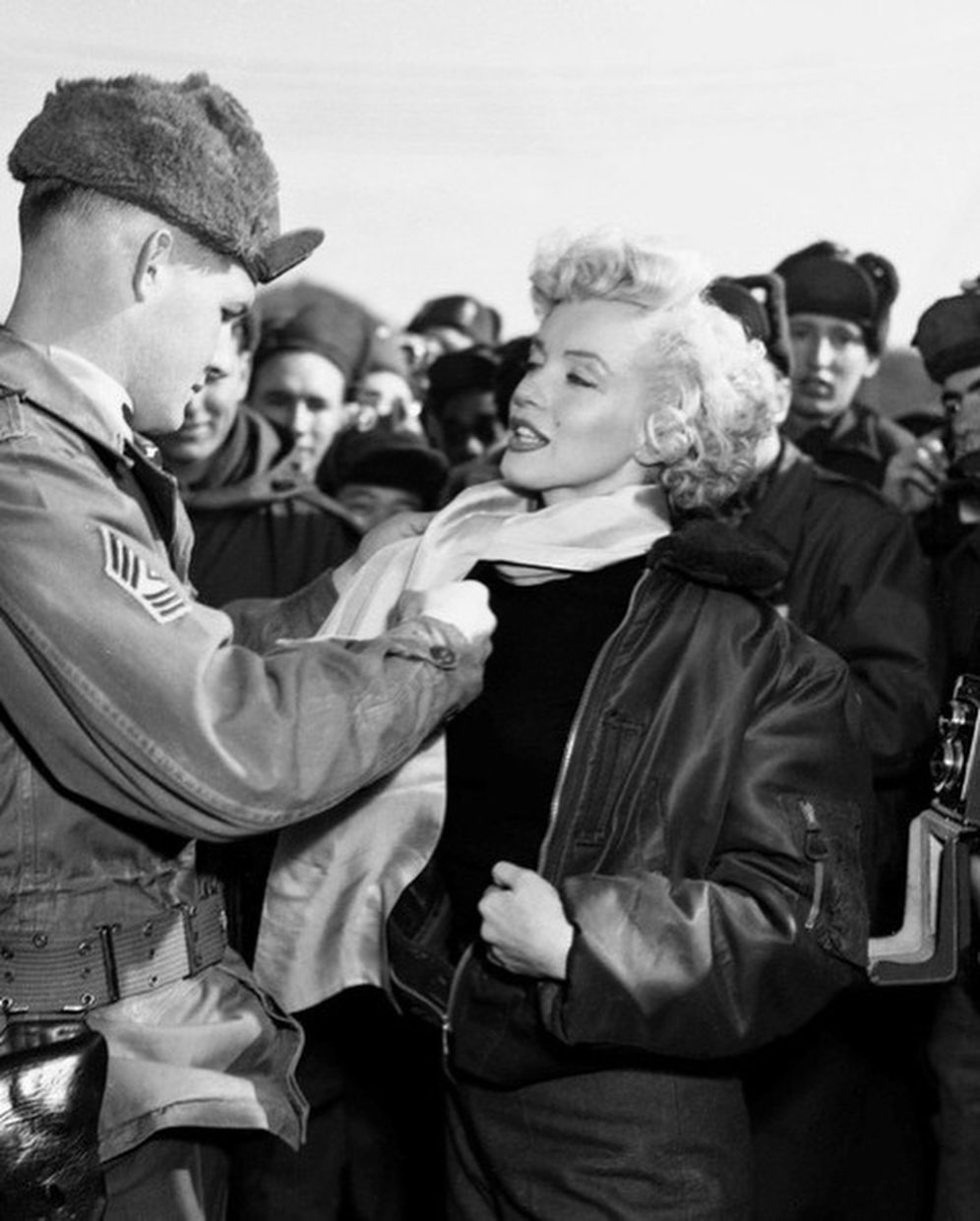 2월 16일 헬리콥터를 타고 서울에 도착한 마릴린 먼로는 한국전쟁중 사용되었던 B-15C 재킷을 입고 있었다.