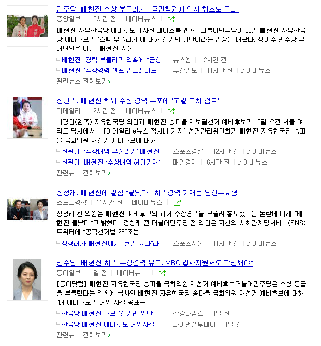 배현진, 수상 경력 '셀프 업그레이드' 논란