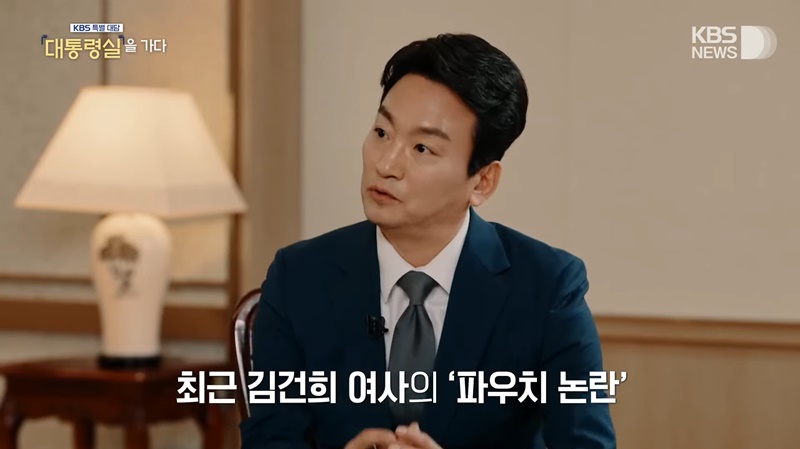 2024년 2월, 대통령 신년 기자회견을 대신하는 성격으로 진행된 윤석열 대통령과의 KBS 단독 대담 녹화 방송 KBS 특별대담 대통령실을 가다에서 진행자로 나서면서 직접 대통령실도 방문했다. 이 자리에서 인터뷰를 진행했는데, 김건희 명품백 수수 의혹과 관련하여 '디올백이나 명품백'이란 용어 대신 "파우치"를 사용했고, "외국 회사의 조만한 백 받았다"와 "놓고 갔다"라는 표현을 쓰며 의미를 의도적으로 애써 축소하려는 듯한 태도의 인터뷰로 야당들로부터 비판을 받았다.