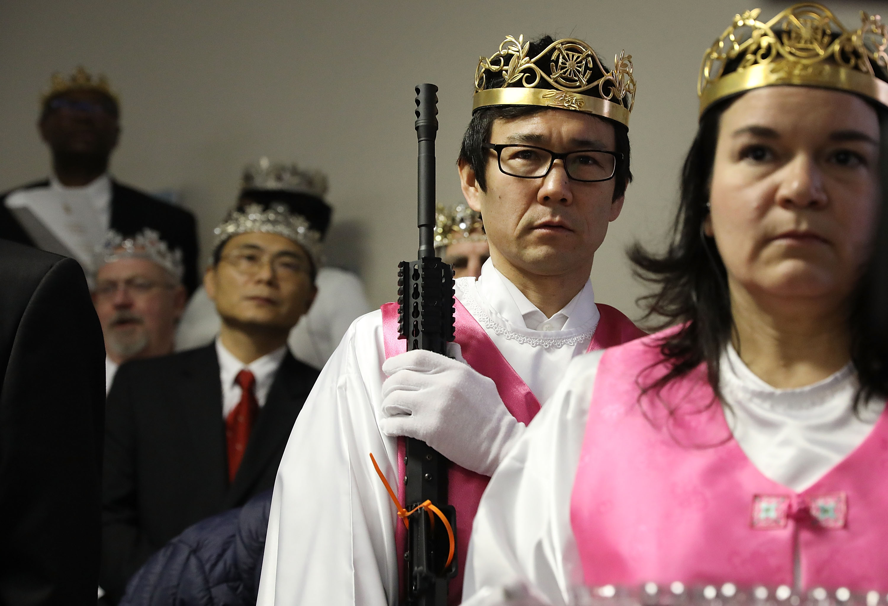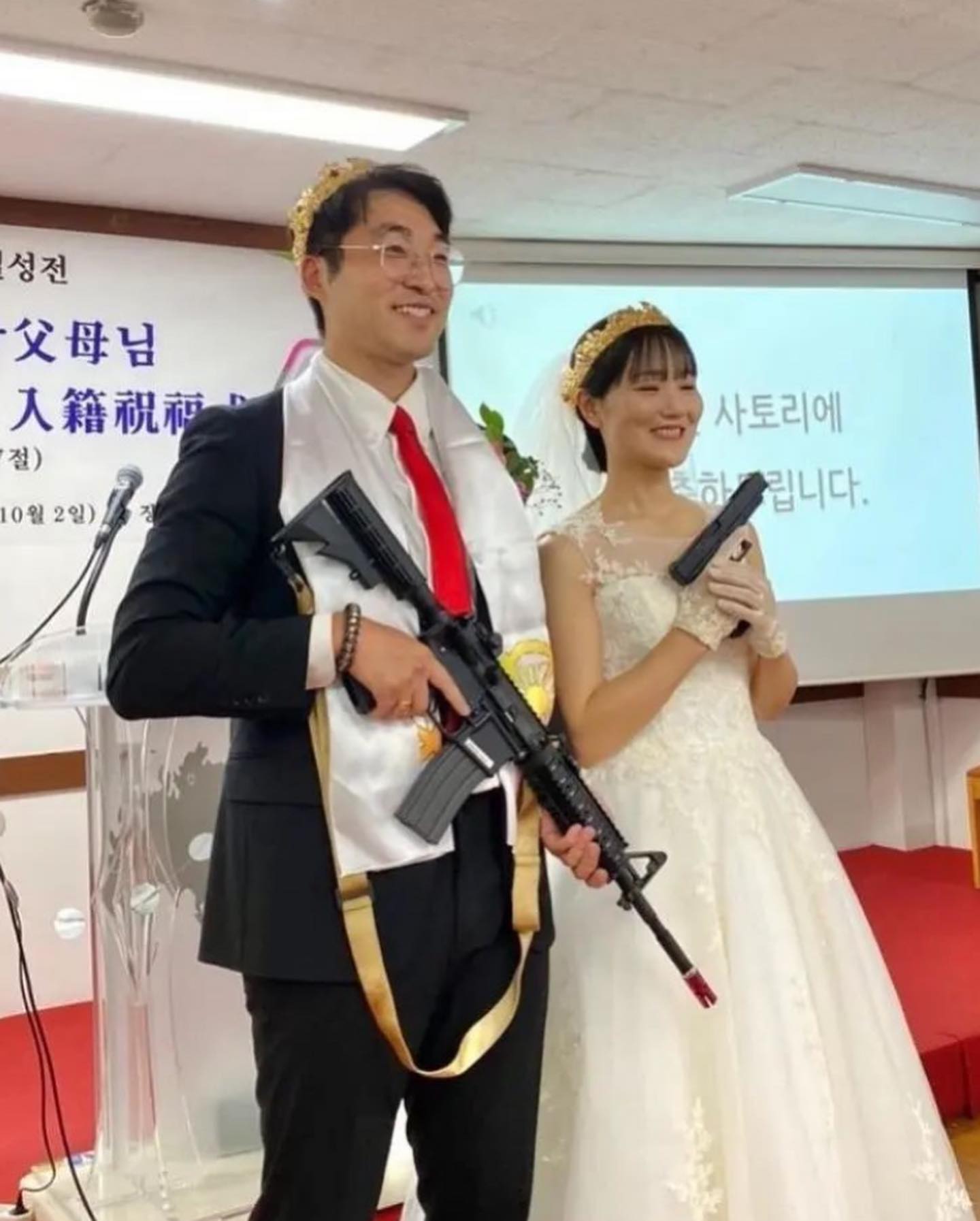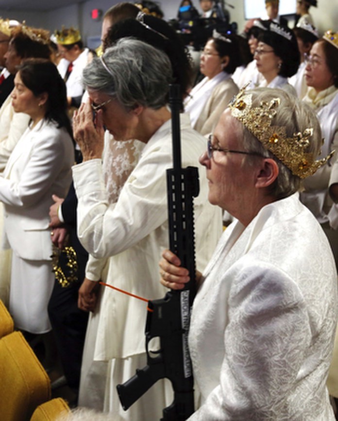 교내 단체 결혼식에 소총을 소지하게 한다.