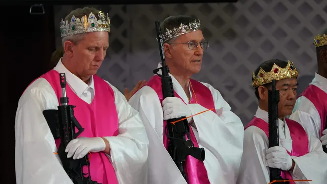 총기가 성경 속 막대 (Rod of iron)를 상징한다고 가르쳤다.