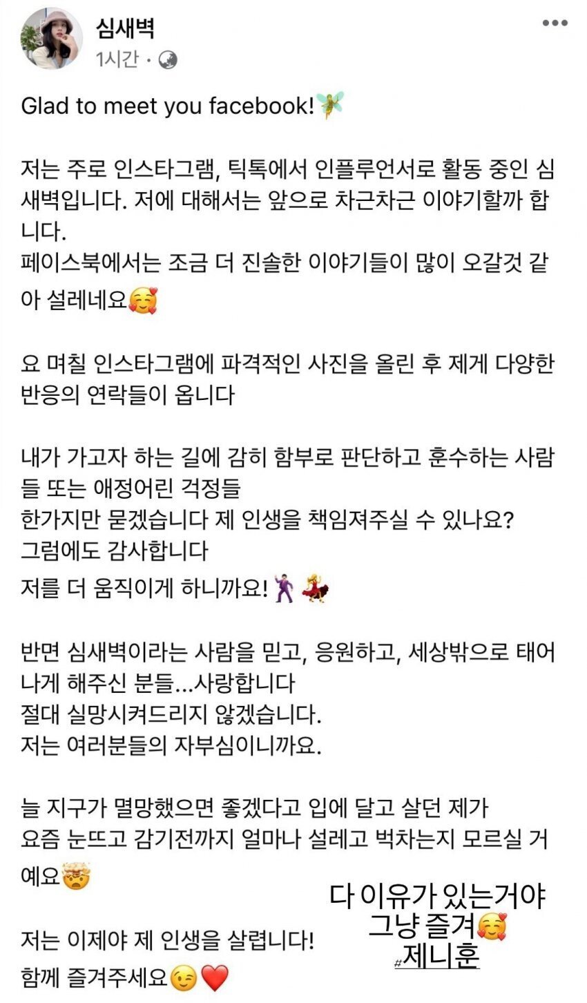 어느 날 올라온 심새벽의 피드